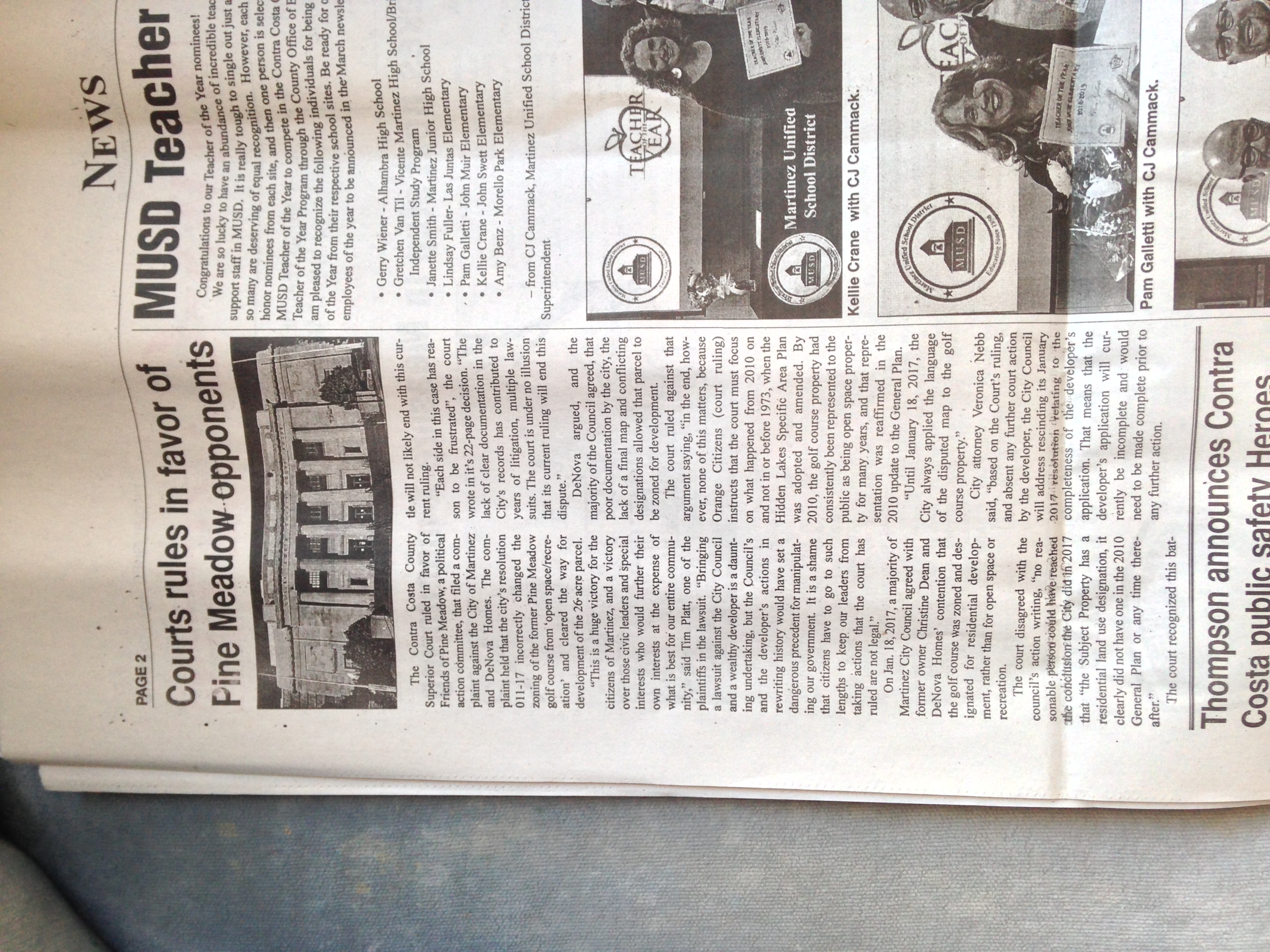 The editorial excoriated the Mayor’s and City Council’s actions and strongly supported our Initiative, Measure I- Martinez Open Space and Park Protection Initiative.